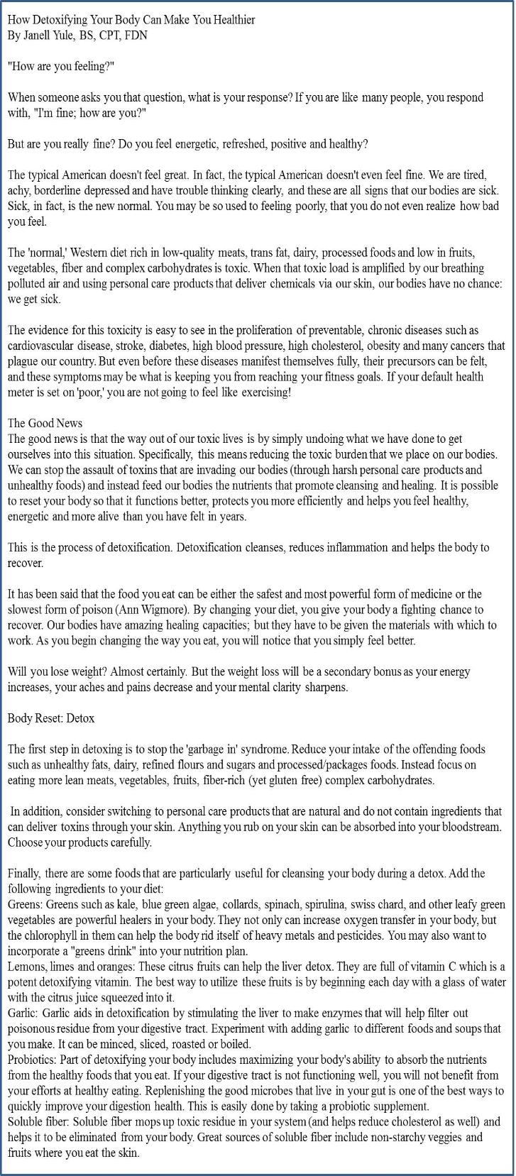 To get started on our very healthy, safe and EFFECTIVE whole foods 21 day detox program